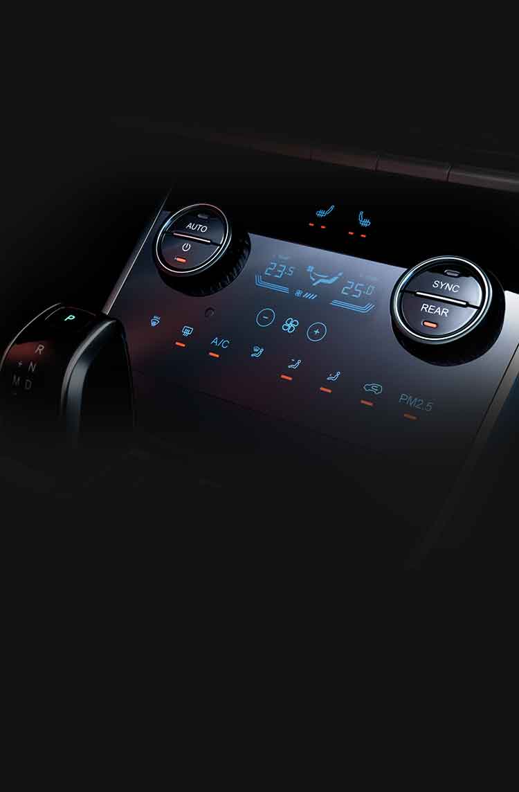 8-inch A/C touch screen is dustproof, waterproof and corrosion resistant. The design style of A/C panel is not only intelligent, beautiful and safe, but also makes the A/C convenient.